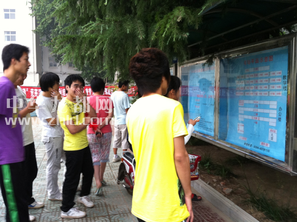 上圖:考生們陸續(xù)到所屬考點查看考場平面示意圖?! ?記者 王映攝)