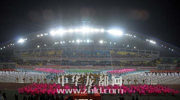 在開幕式大型文體表演《龍騰盛世·周口頌歌》中,5000余名演員為現(xiàn)場觀眾奉獻(xiàn)了一場極具濃郁周口特色的文藝演出,集中展示了我市深厚的歷史積淀、厚重的文化底蘊(yùn)及現(xiàn)代農(nóng)業(yè)發(fā)展的壯麗篇章和科學(xué)發(fā)展、共建和諧、實(shí)現(xiàn)富民強(qiáng)市的蓬勃生機(jī),讓現(xiàn)場觀眾享受了一次豐盛的文化盛宴。