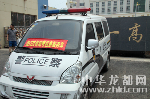 周口市交警支隊在每個考點設(shè)立了高考應(yīng)急服務(wù)車。