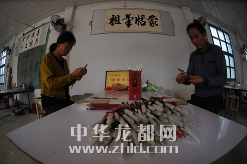 工人制作汝陽(yáng)劉毛筆