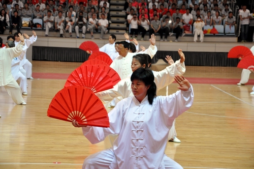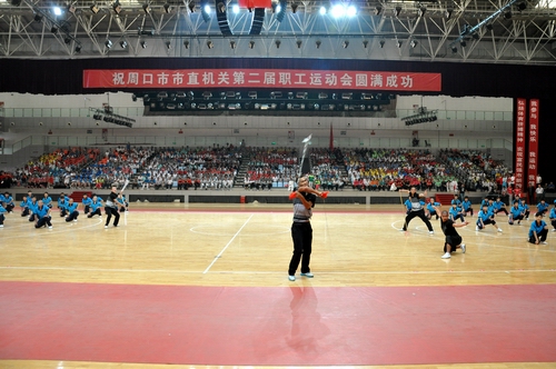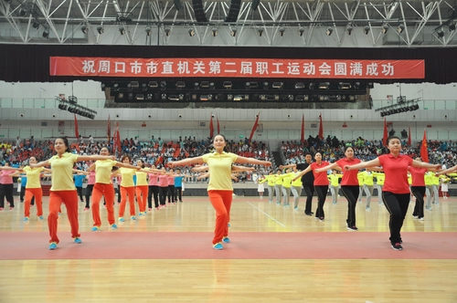 ????開幕式后,由周口市教育局、周口市公路局、周口市直機關事務管理局、周口市直幼兒園四個參賽單位共同表演的第九套廣播體操拉開了文體表演的序幕。周口師范學院推薦的青春健美舞,周口太極協(xié)會的太極刀、太極劍、太極扇表演,周口市秧歌協(xié)會推薦的中老年健美舞和周口三通武校帶來的精彩武術表演等全民健身項目展演。