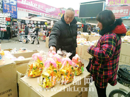當(dāng)日12時(shí)30分許,記者在周口荷花市場(chǎng)看到,各式各樣的花燈擺在道路兩側(cè),不僅有各種卡通動(dòng)物造型的塑料花燈,還有紙質(zhì)、絨布、綢布等材質(zhì)的花燈。2015年是農(nóng)歷乙未年,“金羊賀歲”、“羊羊得意”、“喜羊羊”等卡通羊造型的花燈尤為熱銷,售價(jià)一般在15元至30元?! ?/p>