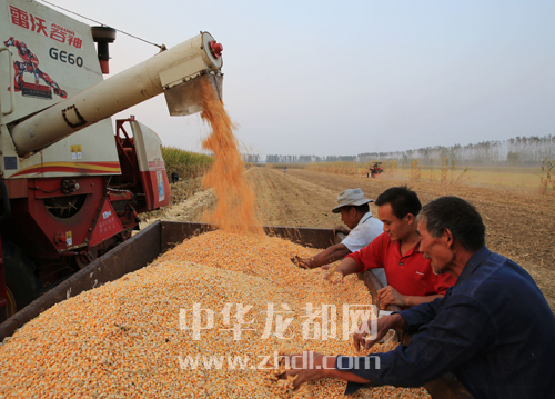 ???? 圖① 9月27日,扶溝縣大李莊鄉(xiāng)馮老村農(nóng)民正在收玉米。該縣各鄉(xiāng)鎮(zhèn)群眾抓住天氣晴好的有利時(shí)機(jī),組織協(xié)調(diào)機(jī)械收秋,做到成熟一塊收割一塊,確保顆粒歸倉。黃金峰 攝????