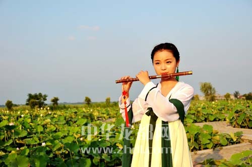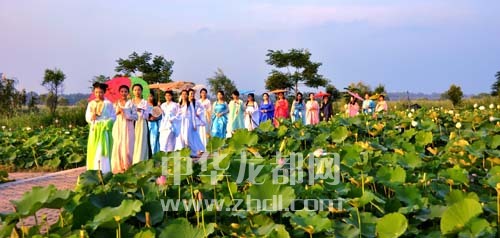 ????淮陽龍湖國家濕地公園荷花品種眾多、花期長達(dá)3個月,每逢周末,游人紛至沓來。日前,一群來自周口市區(qū)的古裝秀愛好者在這里撫琴弄簫、漫步花叢,仿佛穿越時空、從唐詩宋詞中走出的仙子,如夢如幻,宛若仙境。