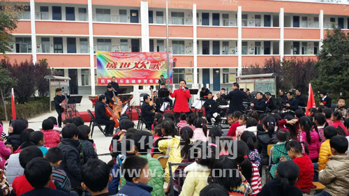 ????11月11日下午,周末公益劇場民族交響音樂進(jìn)校園活動在許灣鄉(xiāng)李靈希望小學(xué)舉行, 周口民族管弦樂團(tuán)的老師為該校600多名師生上了一節(jié)別開生面的音樂課,讓孩子們近距離感受到交響樂的魅力。晚報(bào)記者 王晨 攝