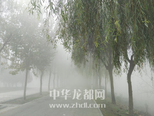 ????11月13日,周口市區(qū)被濃霧籠罩,建筑物和樹木在霧中若隱若現(xiàn),恍如仙境。王銀行 攝