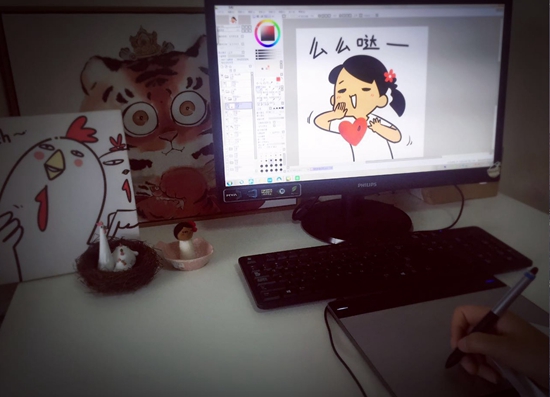 ????創(chuàng)作者正在繪制“制冷少女”表情。 受訪者供圖