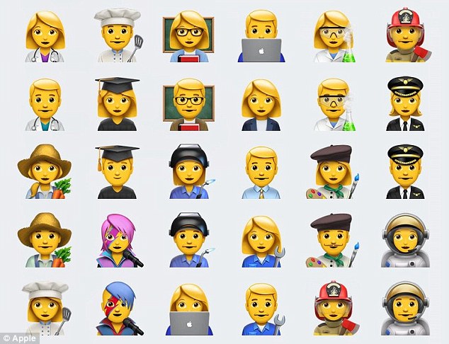 ????這一系列表情由統(tǒng)一碼聯(lián)盟于今年6月份更新,作為Unicode 9.0更新的一部分。72款最新表情中,包含“交叉手指”、“捂臉”“牛油果”“小丑”等表情。除此之外,還包括一系列動(dòng)物,如大猩猩、狐貍、鴨子、魷魚等。其中,最大的變化在于包括了可以選擇性別的各類職業(yè),如宇航員、消防員、焊接工,甚至搖滾明星。