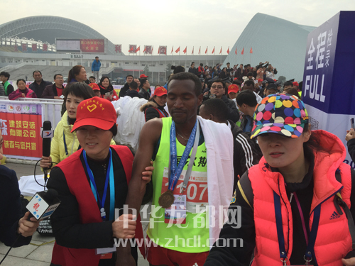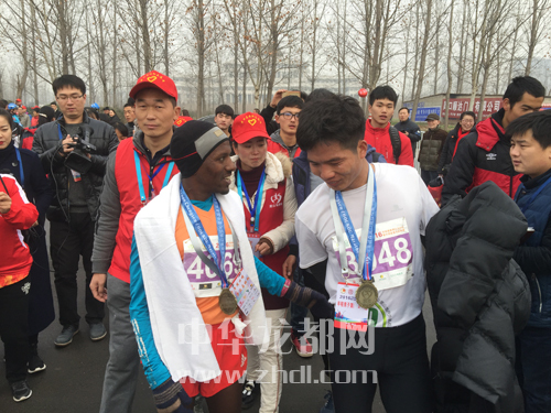 ????經(jīng)過激烈角逐,21歲的小伙子李鴻浩以1小時(shí)12分56秒奪得了男子半程馬拉松第一名,張妮以1小時(shí)24分57秒奪得女子組冠軍。全程馬拉松男、女冠軍分別被來自埃塞爾比亞的兩位選手Bekele和Meskerm·Gutu·Tola以2小時(shí)16分40秒和2小時(shí)44分43秒奪得。