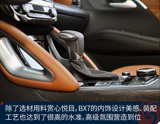 BX7的隔音材料總體夠足料,光在車門上就鋪設了兩個整圈+窗框上多半圈的密封隔音膠條,在這一價位的車型里絕對厚道。底盤的厚重感剛才提到了,高速行駛時無論風噪還是輪胎噪音,抑或發(fā)動機噪音都挺有節(jié)制的,稍微來點音樂就能掩蓋掉,因此這個車跑高速公路是讓人心情愉悅的,車內安靜,而且非常平穩(wěn)。