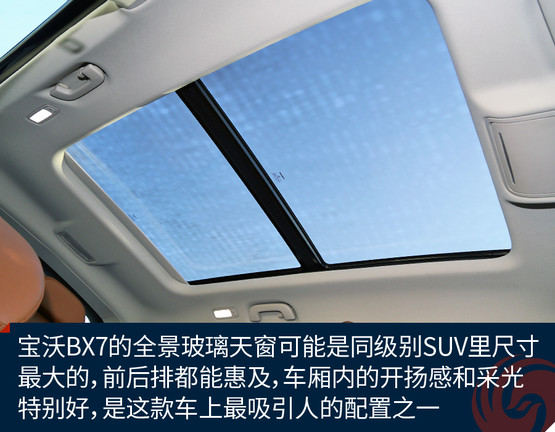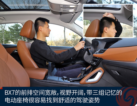 BX7是一款同時擁有5座、6座和7座布局的SUV車型,這款長度超過4.7米的SUV的確有能力在行李廂布置第三排座椅。不過這次我們試駕的車型仍是五座配置,對于這樣尺寸級別的SUV前后排空間自然都不是問題,相當寬闊而且乘坐感非常舒服。旗艦版的配置亦相當豐富,三溫區(qū)自動空調和前后排座椅加熱,以及同級別堪稱無敵的超大全景天窗,在配置方面很有吸引力,而再一次綜合其價格來看,明顯優(yōu)于同級別平均水平的標準配置再一次詮釋了“觸手可及的豪華”這一產品理念。
