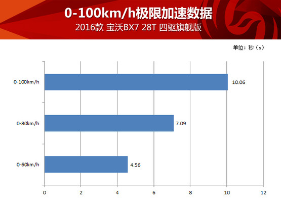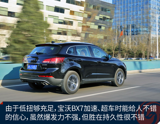 由于有四驅系統保障,寶沃BX7四驅版車型在全力加速起步瞬間非常平穩(wěn),6AT變速器換擋還是平穩(wěn)優(yōu)先,所以全力加速時升檔也沒有太明顯的頓挫、動力中斷或者不平順,整個過程很舒服,而10秒出頭的測試成績對于這臺2.0T動力的中型SUV也很不錯,請別忘了因為與變速器的匹配,這臺2.0T發(fā)動機的扭矩被限制在300牛頓·米,也就是說這臺“高功率”發(fā)動機其實并沒使出全力,我們完全有理由相信解除封印后它理應跑得更快。