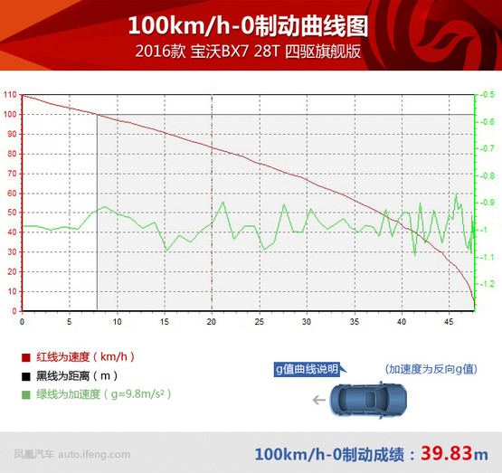 加速過后就要減速,寶沃BX7的制動系統在測試中經受住考驗,不到39米的成績對于一臺SUV而言已經算是很不錯,而且多次測試并未出現制動力有衰減的現象。