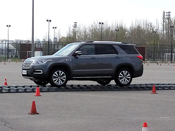 第三個(gè)項(xiàng)目是緊急避讓,體驗(yàn)車輛抓地性;接下來(lái)的側(cè)面斜坡項(xiàng)目長(zhǎng)安CS95順利通過(guò),車身并未有異響。