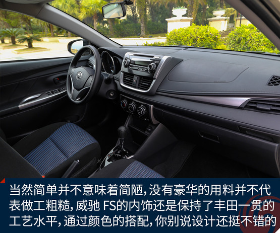 當(dāng)然簡(jiǎn)單并不意味著簡(jiǎn)陋,沒有豪華的用料并不代表做工粗糙,威馳 FS的內(nèi)飾還是保持了豐田一貫的工藝水平,并且通過黑色與銀色相互的搭配,你別說,這個(gè)內(nèi)飾的設(shè)計(jì)還挺不錯(cuò)的。