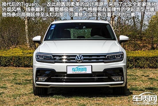 換代后的Tiguan,一改此前圓潤柔美的設(shè)計思路,采用了大眾全新家族化外觀風(fēng)格,線條犀利,雕塑感極強,進(jìn)氣格柵帶有規(guī)律性的突起造型,鍍鉻飾條向兩側(cè)延伸至頭燈內(nèi)部,可謂是大眾車系百看不厭的元素。進(jìn)口版本提供了國產(chǎn)后見不到的R-Line套件,亮黑色飾板與倒梯形設(shè)計頗具原廠改裝氣息,同時前臉面積也被進(jìn)一步擴大,給人中型SUV的既視感。
