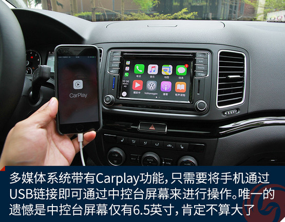 內(nèi)飾方面,夏朗仍然傳承著大眾品牌的經(jīng)典設(shè)計風格,基本不用分辨就知道這是一款大眾汽車。中央的多媒體系統(tǒng)功能豐富,并且?guī)в蠧arplay功能,只需要將手機通過USB鏈接即可通過中控臺屏幕來進行操作。唯一的遺憾是,夏朗的中控臺屏幕僅有6.5英寸,在現(xiàn)在看來肯定不算大了。