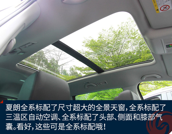 在配置方面,夏朗6座版也確實有值得稱道的地方,比如夏朗全系標配了尺寸超大的全景天窗,全系標配了三溫區(qū)自動空調(diào)、全系標配了頭部、側(cè)面和膝部氣囊??春?,這些可是全系標配哦!