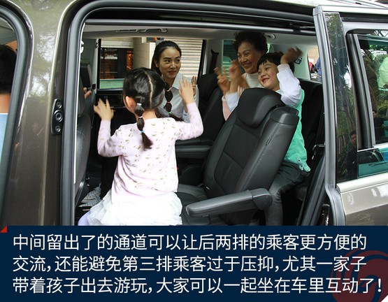 中間留出了的通道可以讓后兩排的乘客更方便的交流,還能避免第三排乘客過于壓抑,尤其一家子帶著孩子出去游玩,大家可以一起坐在車里互動了!