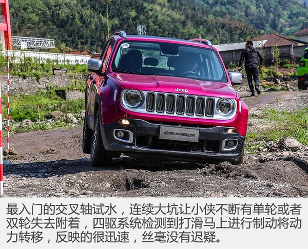 交叉軸說實話完全難不倒自由俠,憑借聰明并且果斷的四驅系統(tǒng)輕松通過,基本沒有空轉撓地;期間還對比了競品車型,出于某種原因就不透露車型和照片了,某V在左前輪失去附著力的情況下,撓了半天,總算勉強通過,右前輪和左后輪同時空轉的情況下,基本就歇菜了,還得靠牧馬人給扽上來,自由俠的優(yōu)勢顯而易見。