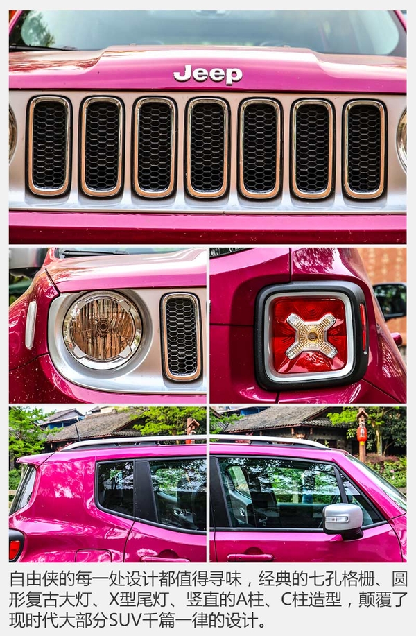 自由俠雖然是Jeep家族中最小的成員,但是卻也是最充滿設計元素和細節(jié)設計的車,無論是外觀還是內飾。