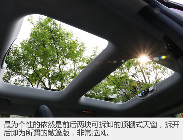 就跟一個長的很有氣質又與眾不同的姑娘一樣,自由俠怎么看都看不膩,真的是太充滿設計感,外觀內飾的每一處細節(jié)都仿佛充滿了讓你心動不已的彩蛋,等著你去欣賞和挖掘它隱藏在個性與時尚之下更深一層所體現(xiàn)的情懷;打著情懷的名號卻不失實用性,在空間上作為一臺小型SUV并沒有產生任何劣勢,乘坐空間的表現(xiàn)很優(yōu)秀,而可拆卸頂棚又為車內帶來太好的通透性。