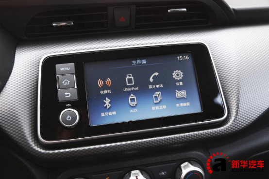 中控部分,整體布局相對規(guī)整,線條的設計也富有一定的層次感。多功能方向盤也采用了運動風格的平底設計。7英寸多媒體液晶屏集成了多媒體、藍牙通話及智能手機互聯(lián)等功能,屏幕的靈敏度也令人滿意。空調采用了手動的旋鈕操作,簡而易懂非常方便。低配車型仍使用的機械鑰匙點火,中高配車型則配備了一鍵啟動功能。