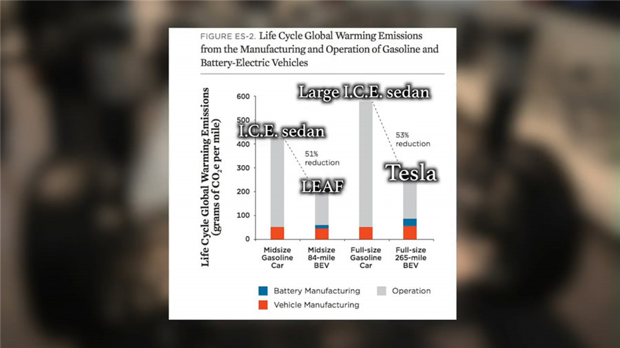 ????????但是如果算上在使用過(guò)程中產(chǎn)生的排放,在完整的使用周期中,電動(dòng)車產(chǎn)生的總排放比內(nèi)燃機(jī)汽車就少了一半左右。