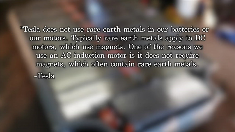 ????????視頻最后還討論了關(guān)于電動(dòng)車中使用到的稀土資源,以及電池的后期回收問(wèn)題。特斯拉使用了交流感應(yīng)電機(jī)而非直流電機(jī)的原因就是為了少使用稀有的稀土。