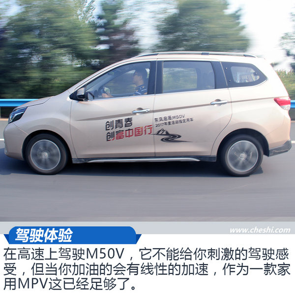 ????總結(jié):10多天來,我們駕駛著M50V走過城市道路,經(jīng)歷過長途旅行,上過山,爬過坡,作為一臺十萬元以下的MPV,1.6L+CVT的動力組合的平順性和底盤的扎實是我沒有想到的。同時在炎炎夏日車內(nèi)大開空調(diào)能有較好的燃油經(jīng)濟性,也是一大亮點。對于這樣一款擁有合資品牌技術的車型來說,是有可能成為新一代神車的!
