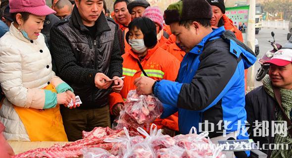 一名環(huán)衛(wèi)工人領(lǐng)到了羊肉。