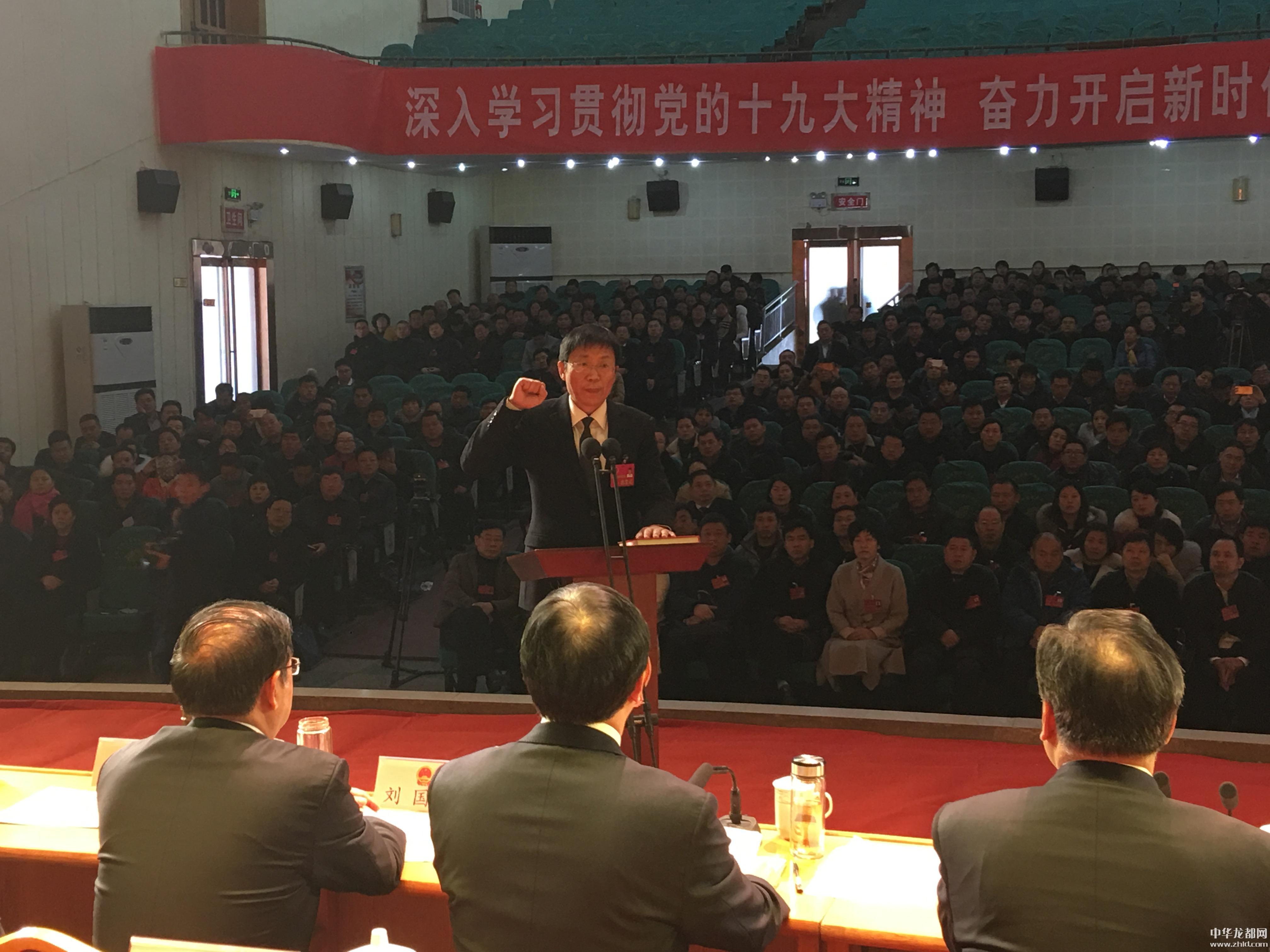 “我宣誓:忠于中華人民共和國憲法,維護憲法權(quán)威,履行法定職責,忠于祖國、忠于人民,恪盡職守、廉潔奉公,接受人民監(jiān)督,為建設富強、民主、文明、和諧的社會主義國家努力奮斗!”劉孟連左手撫按《憲法》,右手握拳高舉,莊嚴宣誓。全體代表監(jiān)誓。