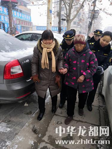當(dāng)日早上8點(diǎn)15分許,正在西華縣明德小學(xué)附近執(zhí)勤的縣城管局女子中隊(duì)的一名隊(duì)員突然發(fā)現(xiàn)一位老婆婆時(shí)而左右張望,時(shí)而喃喃自語(yǔ)。這名隊(duì)員立即上前詢問該名老人是否遇到困難時(shí),還未等隊(duì)員說話,老人就張口說:“閨女,我不知道回家的路了?!苯?jīng)過耐心溝通得知,老人當(dāng)日從老家來縣城找閨女,但是忘了閨女家怎么走。老人只記得兒子的名字,其它一無所知。女子中隊(duì)的隊(duì)員們一邊安撫老人的情緒,一邊把老人的情況、照片與其兒子的姓名等信息發(fā)到西華縣城市管理工作群,并用對(duì)講機(jī)通知讓大家共同關(guān)注幫忙尋求線索。城市管理工作群的群?jiǎn)T們及時(shí)把信息轉(zhuǎn)發(fā)到朋友圈,很快工作群里有了回復(fù)信息,有人認(rèn)識(shí)老人的兒子,并提供了聯(lián)絡(luò)方式等信息。通過電話溝通,證實(shí)了高某正是老人的兒子。因?yàn)樘鞖夂?,想著老人行?dòng)不便而且容易著涼,為盡快把老人送到家人身邊,女子中隊(duì)的隊(duì)員們隨即把老人扶上車送其回家。