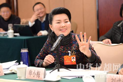 申小梅代表就如何發(fā)揚光大傳統(tǒng)文化藝術提出建議。記者王映攝