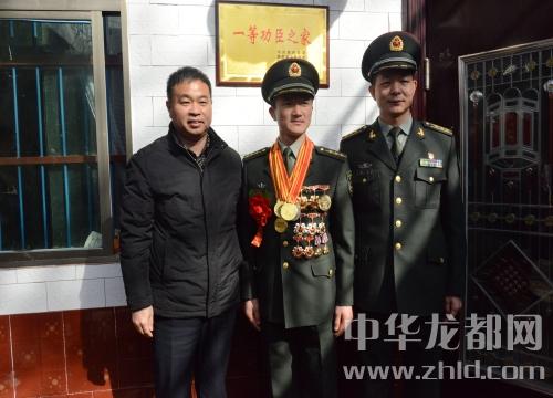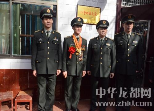 軍地領(lǐng)導(dǎo)與一等功臣張金濤及家人合影