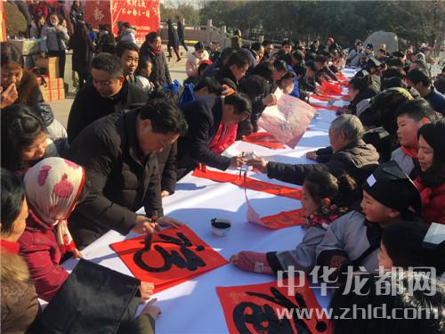 在活動現(xiàn)場,熱情的市民把書寫臺圍得水泄不通,大紅色的春聯(lián)、“?!弊指鎏砹斯?jié)日的喜慶氣氛?!按郝?lián)到處都能買到,但是書法家寫的春聯(lián)可買不到,我一定得領(lǐng)一副書法家寫的春聯(lián)?!笔忻駝⑴啃χ鴮τ浾哒f。