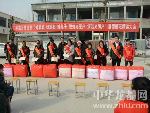 中華龍都網(wǎng)訊(周口報業(yè)全媒體記者 付永奇 趙永昌 文/圖))2月10日下午,商水縣平店鄉(xiāng)曾莊小學操場內(nèi),人頭攢動、熱鬧非凡,村里評選出來的10位好婆婆、好媳婦、好兒子、清潔文明戶、脫貧光榮戶等“五好”群眾代表身披綬帶、胸戴紅花,臉上都洋溢著幸福的喜悅;一些民間文藝團體分別助興表演了挑花籃、扇子舞、廣場舞等喜慶的節(jié)目,把現(xiàn)場氣氛烘托得異常隆重熱烈?!盀楹霌P社會公德、家庭美德,提升群眾素質(zhì)和文明程度,春節(jié)來臨之際我們召開‘五好’表彰大會,下面有請鄉(xiāng)黨委副書記、鄉(xiāng)長徐汝濤給大家講話......”隨著主持人、鄉(xiāng)紀委書記劉新光的開場白,臺下響起了一陣熱烈的掌聲。“開展好婆婆、好媳婦、好兒子、清潔文明戶、脫貧光榮戶等模范家庭人物評選是我鄉(xiāng)精神文明建設(shè)工作的一項重大舉措,也是脫貧攻堅、農(nóng)村人居環(huán)境整治、文明鄉(xiāng)風提升的部分內(nèi)容,更是弘揚孝親敬老、勤勞致富、講究衛(wèi)生等優(yōu)良傳統(tǒng)的需要。全鄉(xiāng)各村都要通過召開評選表彰大會,引導廣大人民群眾學先進、爭先進,為文明和諧平店建設(shè)做出更大的貢獻......”徐汝濤提出殷切的希望。曾莊行政村“兩委”成員、駐村工作隊、第一書記及部分群眾200余人參加了會議。與會領(lǐng)導為此次層層推薦評選出的好婆婆、好媳婦、好兒子、清潔文明戶、脫貧光榮戶頒發(fā)了榮譽證書和獎品。據(jù)村支部書記曾紀靈介紹,這些“五好”模范都有感人的故事,或是講究衛(wèi)生、勤儉持家,孝老敬親、患難與共;或是鄰里互助、脫貧致富;他們用實際行動證明了自己對文明風尚的價值追求,在生活中書寫了一個個接地氣的好故事,為廣大家庭樹立了好榜樣。受表彰的好婆婆胡秀英說:“把媳婦當閨女,啥時候也不會吵架生氣......”清潔文明戶朱國申說:“農(nóng)村環(huán)境臟亂差,咱要帶頭改變它......”脫貧光榮戶劉前進說:“國家扶貧政策好,不如早點摘掉貧困帽!”