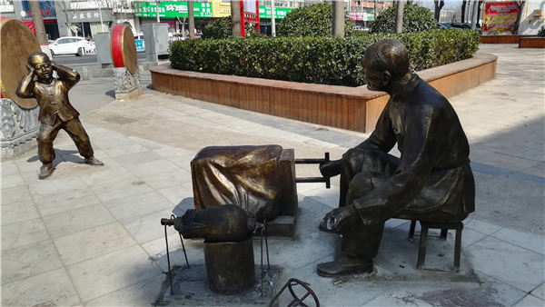 這幾天,細心的市民發(fā)現(xiàn),周口市建設路與八一路口多了4組街頭雕塑。與“高大上”的常見城市雕塑不同,這幾組雕塑非常接地氣,表現(xiàn)的是“爆米花”“打燒餅”“剃頭匠”等市井百態(tài)。不少市民點贊說,這些場景在現(xiàn)代都市里已經(jīng)很少見了,用雕塑的形式呈現(xiàn)出來,讓他們找回了童年記憶。