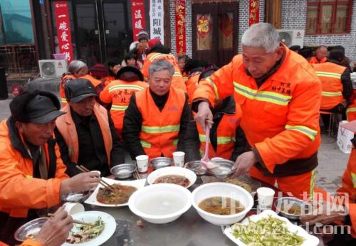 中華龍都網(wǎng)訊(記者 付永奇 通訊員李文濤 )3日2日是農(nóng)歷正月十五,商水縣百名環(huán)衛(wèi)工人中午大聚餐,吃上熱氣騰騰的菜肴和甜味可口的元宵。