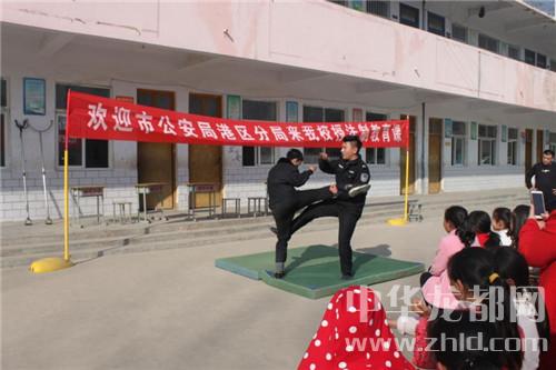 中華龍都網(wǎng)訊 (周口報(bào)業(yè)全媒體記者 宋風(fēng) 通訊員 王天晨 文圖)3月12日,周口港區(qū)郭河小學(xué)校園內(nèi)掌聲雷動(dòng),學(xué)生們?cè)诓賵?chǎng)上興奮地觀看港區(qū)民警演示的“擒敵拳”和防身“格斗術(shù)”。這是周口市公安局周口港區(qū)分局在轄區(qū)學(xué)校內(nèi)開展的十九大精神宣講和法制教育講座及自我防范技能課。3月份以來,港區(qū)民警已在轄區(qū)24所中小學(xué)及幼兒園開展此項(xiàng)活動(dòng)21場(chǎng)。