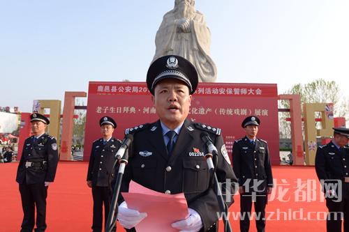中華龍都網(wǎng)訊(周口報(bào)業(yè)全媒體記者 李瑞才 通訊員 石中華 文/圖)為扎實(shí)做好2018年老子廟會(huì)系列活動(dòng)安全保衛(wèi)工作,進(jìn)一步鼓舞士氣、激勵(lì)斗志,誓奪系列活動(dòng)安保工作決戰(zhàn)全勝。2018年3月30日下午,鹿邑縣公安局在太清宮老子文化廣場隆重舉行2018年老子廟會(huì)系列活動(dòng)安全保衛(wèi)誓師大會(huì),周口市公安局黨委委員、鹿邑縣副縣長、公安局長何新敏出席大會(huì)并作動(dòng)員講話。局黨委全體班子成員和參加安保執(zhí)勤的全體民警、輔警、武警官兵、消防隊(duì)員共計(jì)1200余人參加了誓師大會(huì)。誓師大會(huì)由政委任金瑞主持。