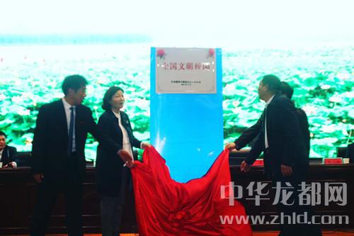 中華龍都網(wǎng)訊 (周口報(bào)業(yè)全媒體記者 侯俊豫 通訊員 孫琳琳)4月24日,是淮陽中學(xué)廣大師生難忘的日子。在學(xué)校報(bào)告廳召開的創(chuàng)建全國文明校園總結(jié)表彰大會(huì)上,市文明辦副主任劉成華,縣委常委、宣傳部長謝留定,副縣長薛燕和校長高遠(yuǎn)征共同為該校成功創(chuàng)建“全國文明校園”揭牌。該校是我市首個(gè)獲此殊榮的學(xué)校。