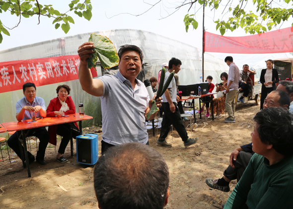 5月10日,在鹿邑縣馬鋪鎮(zhèn)完樓村殘疾人士付天軍的培訓(xùn)基地——蔬菜種植合作社助殘大棚內(nèi),來(lái)自鹿邑縣馬鋪鎮(zhèn)、渦北鎮(zhèn)產(chǎn)業(yè)集聚區(qū)的150多名建檔立卡貧困殘疾人,齊聚這里免費(fèi)學(xué)習(xí)黃瓜種植技術(shù),付天軍在大棚內(nèi)手把手地進(jìn)行指導(dǎo),來(lái)自華陽(yáng)學(xué)校的農(nóng)業(yè)專家李中蘭也應(yīng)邀在大棚內(nèi)對(duì)常見(jiàn)的病蟲(chóng)害進(jìn)行詳細(xì)講解。