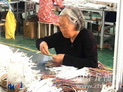 中華龍都網(wǎng)訊(周口報業(yè)全媒體記者 王泉林)沈丘縣石槽集鄉(xiāng)劉腰莊扶貧車間內(nèi),工人正在有條不紊地工作。沈丘縣大力推進優(yōu)勢產(chǎn)業(yè)、龍頭企業(yè)參與產(chǎn)業(yè)扶貧,由政府建設扶貧車間,企業(yè)租用車間開展產(chǎn)業(yè)扶貧,收入歸村集體經(jīng)濟,用于發(fā)展村級事業(yè)和扶貧。扶貧車間吸納附近貧困戶和村民前來就業(yè),僅凱旺電子科技有限公司一家企業(yè)就經(jīng)營扶貧車間27個,吸納貧困群眾360多個。