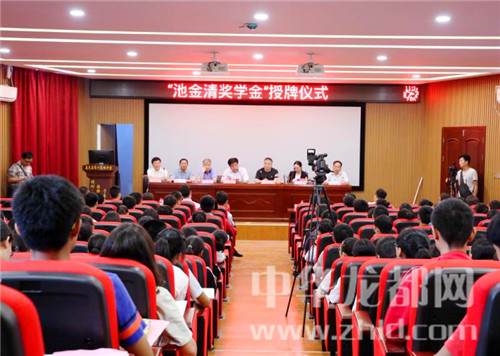 中華龍都網(wǎng)訊(周口報(bào)業(yè)全媒體記者李瑞才 通訊員 郭中華 寧高明)致富不忘桑梓,設(shè)獎(jiǎng)回饋母?!?月18日下午,“池金清獎(jiǎng)學(xué)金”授牌儀式在鹿邑二高舉行。鹿邑縣金輝名酒貨倉董事長池金清、鹿邑縣教體局局長王振言及全校師生代表300多人參加授牌儀式,以對(duì)從該校走出去、創(chuàng)業(yè)有成并設(shè)立獎(jiǎng)學(xué)金回饋母校學(xué)子的池金清先生的義舉表示感謝。