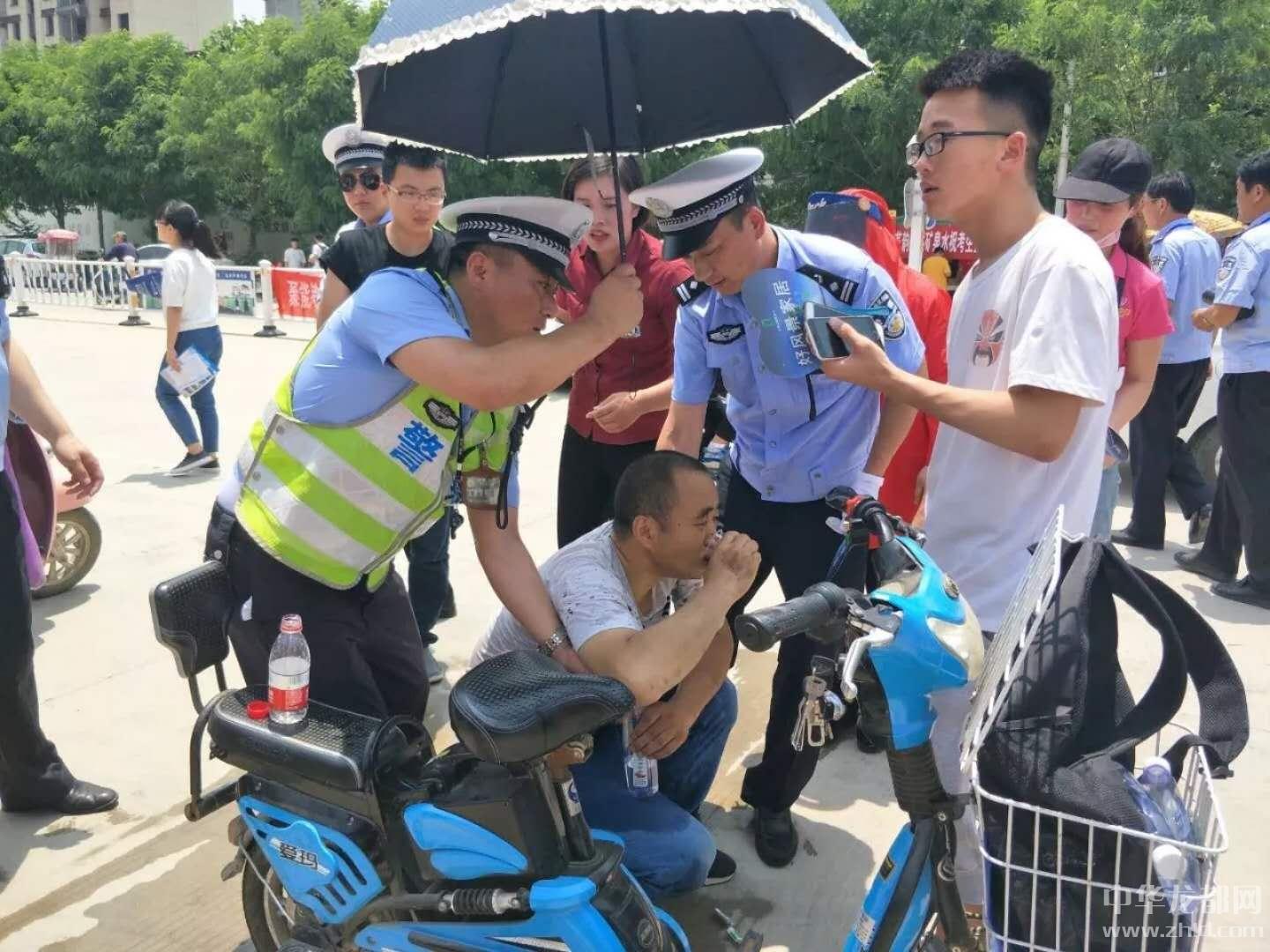 當(dāng)日上午12時許,在沈丘縣一高大門口附近等待的一名考生家長癱坐在路邊,臉色蒼白,看起來身體極其不適。正在執(zhí)勤的劉濤見狀,一邊上前對車流、人流進行疏導(dǎo),避免圍觀群眾太多引發(fā)意外事故,一邊迅速聯(lián)系沈丘縣人民醫(yī)院120急救車迅速前來搶救。