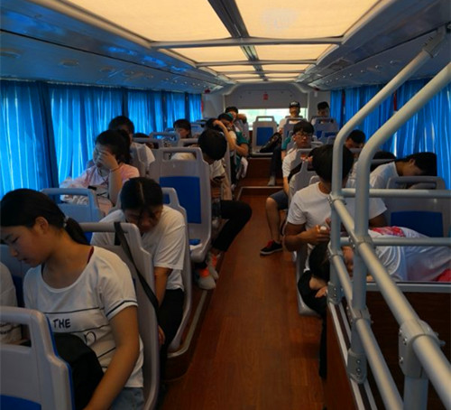 周口市文昌中學(xué)考點(diǎn)地處較為偏僻,考點(diǎn)周邊公共服務(wù)設(shè)施較少,市公交總公司投入兩輛雙層空調(diào)公交車作為公交空調(diào)休息車,從早上8時(shí)開放至下午5時(shí),專供考生及其家長(zhǎng)候考使用。為了給考生加油打氣,兩輛雙層公交都拉上高考祝福標(biāo)語(yǔ)“天王蓋地虎全考985,寶塔鎮(zhèn)河妖全上211”、“今年考生特別牛,全部都上雙一流”。兩個(gè)詼諧幽默的標(biāo)語(yǔ),給考場(chǎng)外帶來(lái)一些輕松氣氛,緩解考生和家長(zhǎng)的緊張情緒,也給考場(chǎng)外增添了樂趣。