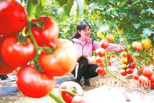 依托河南農(nóng)業(yè)大學(xué)專家團(tuán)隊(duì),扶溝縣蔬菜研究院研發(fā)出400多個番茄新品種,通過集中展示讓種植戶優(yōu)中選優(yōu),并實(shí)施對貧困戶購買種苗優(yōu)惠50%、特困戶免費(fèi)供應(yīng)的優(yōu)惠政策,帶動206戶貧困戶實(shí)現(xiàn)脫貧。圖為工作人員在記錄番茄新品種的試驗(yàn)數(shù)據(jù)。谷志方 攝