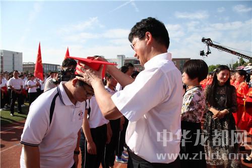 與會領(lǐng)導(dǎo)分別為成人學(xué)生代表佩戴了成人帽和成人紀(jì)念章,教師和家長代表也走進(jìn)學(xué)生中間,為學(xué)生佩戴了成人帽和成人紀(jì)念章。