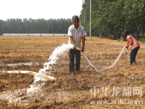 中華龍都網(wǎng)訊(周口報(bào)業(yè)全媒體記者 李瑞才 通訊員 胡洪濤 孫廣合)6月17日,鹿邑縣鄭集鄉(xiāng)曹牌村農(nóng)民曹昌文在抗旱澆地。 自6月初進(jìn)入“三夏生產(chǎn)”以來,連續(xù)高溫?zé)o有效降水,全縣受旱面積達(dá)到50多萬畝,為應(yīng)對(duì)持續(xù)發(fā)展的旱情,鹿邑縣緊急召開抗旱保秋工作推進(jìn)會(huì),安排部署全縣上下集中力量投入抗旱,爭取用10天左右的時(shí)間把全縣50多萬畝秋作物澆灌一遍。和鄭集鄉(xiāng)一樣,目前,鹿邑全縣農(nóng)村已迅速掀起抗旱保苗高潮。